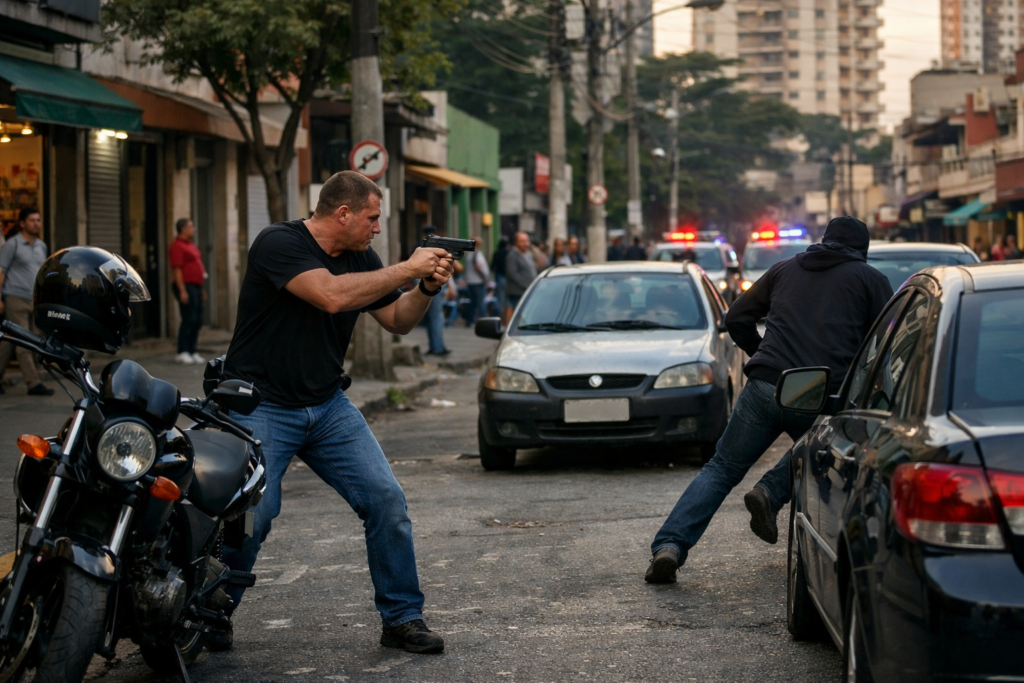 Um policial militar de folga tentou intervir em um assalto no bairro Ipiranga, na zona sul de São Paulo, na tarde desta quinta-feira (12), mas acabou atingindo a própria vítima do crime durante a ação.