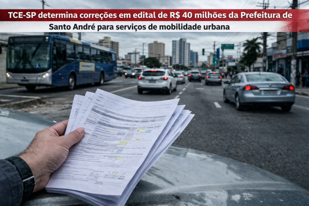 O Tribunal de Contas do Estado de São Paulo (TCE-SP) determinou a revisão do edital do Pregão Eletrônico nº 412/2025 da Prefeitura de Santo André, destinado à contratação de empresa para prestação de serviços de mobilidade urbana, com valor estimado de R$ 40.041.683,06.